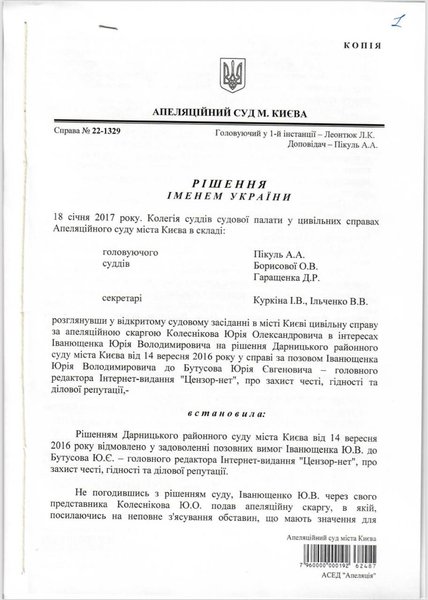 "Бутусов и "Цензор" вновь распространяют ложь в отношении Иванющенко", - адвокат