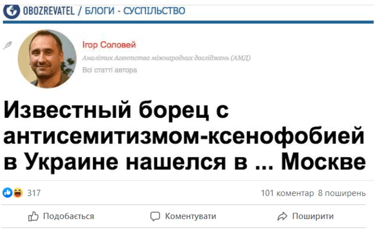 "Надеюсь, что мой опыт — журналиста, аналитика международных отношений и специалиста по российской дезинформации, и опыт Николая — историка и исследователя гибридных угроз, только усилит Центр. Своей задачей вижу а) объединить усилия государства и мощного десанта информационных волонтеров, которые работают все эти годы б) установить надежные контакты Центра с коммуникационными командами государственных органов — чтобы построить стали коммуникации для противодействия дезинформации", — пишет Соловей.