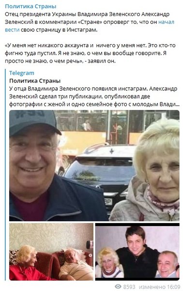 В своем комментарии "Стране" отец Владимира Зеленского опроверг информацию о том, что начал вести свою страницу в Instagram.