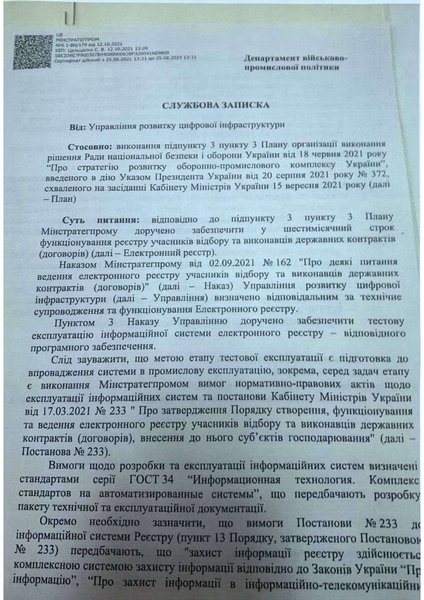 Согласно служебной записке и. о. начальника Управления развития цифровой инфраструктуры – начальника отдела реализации государственной политики цифровизации Минстратегпрома Сергея Цальцалко, реестр работает в тестовом режиме, а для начала его работы необходимо выделить еще один миллион гривен, которые должны пойти на построение комплексной системы защиты информации.