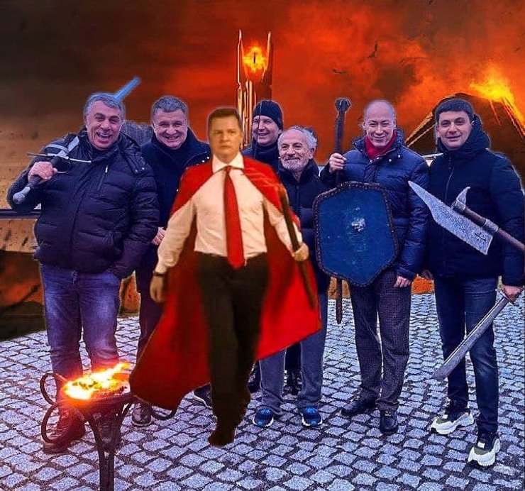 Оказавшихся на фото также представляли в разных ролях. В одном из мемов их изобразили в образе героев вселенной "Властелина колец", которые следовали за предводителем — главой "Радикальной партии" Олегом Ляшко.