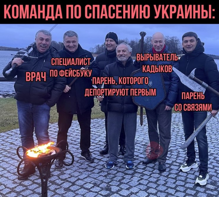 Один из креативных пользователей назвал Авакова, Комаровского, Шустера, Елизарова, Гордона и Гройсмана "командой по спасению Украины". Аваков стал "специалистом по Фейсбуку", а Гордон – "вырывателем кадыков". Напомним, что Гордон является автором фразы "Ты мне не попадайся на глаза, я тебе кадык вырву, с..ка", которая также вызвала волну мемов и шуток.
