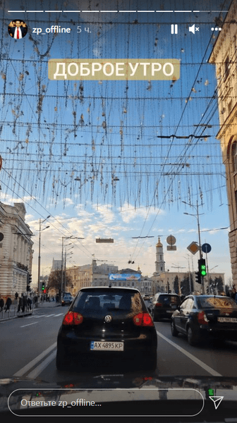 Утром 23 ноября Куницкий опубликовал в "сториз" фотографию, сделанную возле того же перекрестка улицы Сумской и переулка Мечникова.