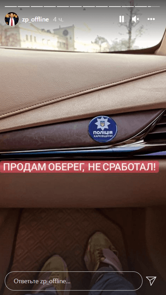 После инцидента парламентарий опубликовал фото значка с надписью "Полиция Харьковщины" и заявил, что продает его, поскольку "оберег не сработал".