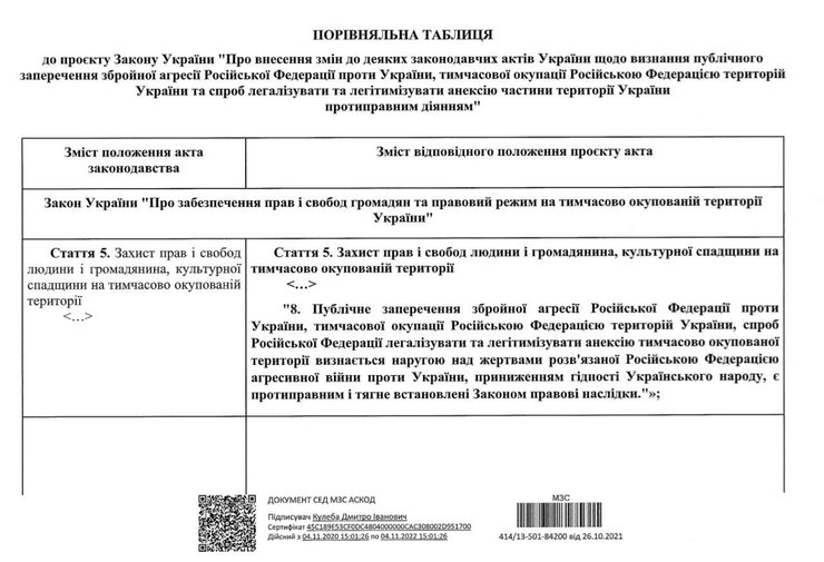 Кабинет министров Украины представил законопроект об усилении ответственности публичных лиц за отрицание вооруженной агрессии России в отношении Украины. Об этом заявил премьер-министр Украины Денис Шмыгаль во время очередного заседания правительства.