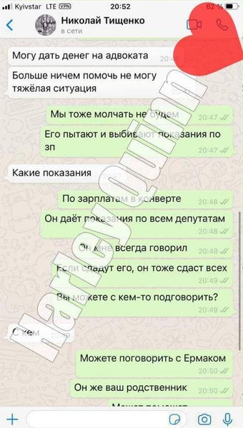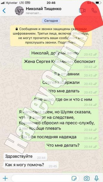 По словам автора канала, он притворился женой Сергея Кузьминых и просил помощи у избранных от "Слуги народа" нардепов, включая Елену Шуляк, Александра Корниенко, Михаила Радуцкого и Максима Перебейноса, однако самая интересная переписка получилась с Николаем Тищенко. Псевдосупруга заявила, что из Сергея Кузьминых "выбивают" показания о депутатах, в том числе о зарплатах в конвертах. В ответ Николай Тищенко предложил дать денег на адвоката и заверил, что у него нет контактов в НАБУ.