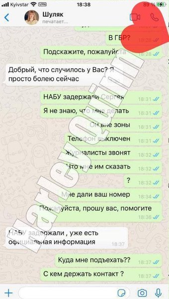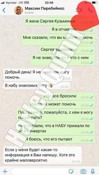 Зарплаты в конвертах упоминаются также в переписке с Максимом Перебейносом. Тот заявил, что не имеет знакомых в НАБУ и пообещал делиться информацией, если что-то узнает.