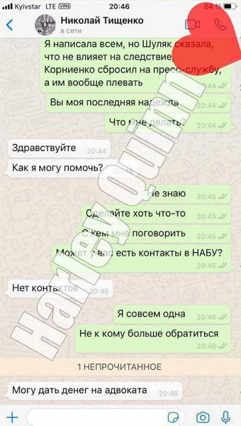 Тищенко, если верить скриншотам, согласился дать денег на адвоката, Корниенко посоветовал связаться с медийщиками партии, а Шуляк заверила, что не влияет на следствие.