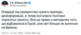 "Операции под прикрытием чужого флага, дезинформация, а теперь их собственные приспешники "просят" защиты. Все это прямо из методички того, что происходило в Грузии, но мир больше не купится на ложь", — заявили в посольстве.