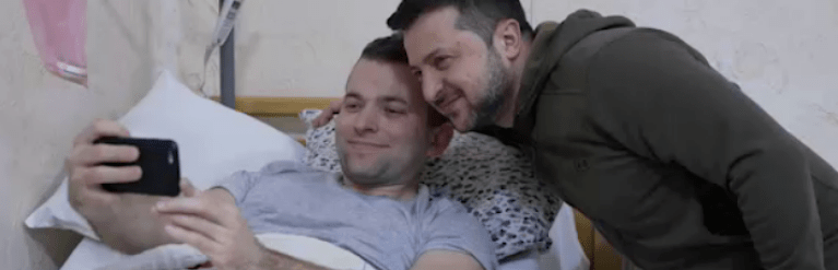 Зеленский вручил в госпитале медали раненым украинским бойцам