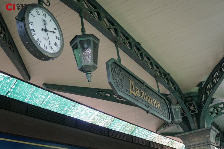 На железнодорожном перроне есть рельсы, скамейки для ожидания и даже часы и фонари. Над перроном висит название станции – "Дальняя".
