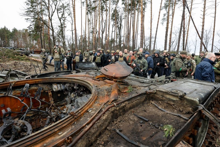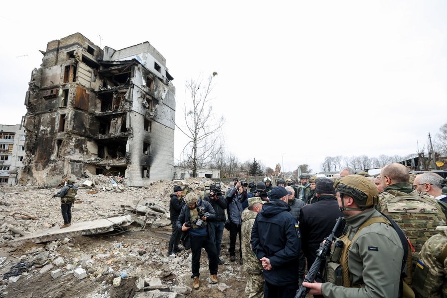 Увидели зверства войны: президенты четырех стран посетили разбомбленную Бородянку (фото)