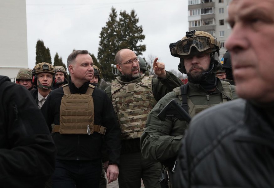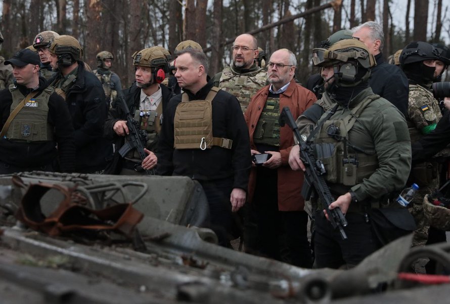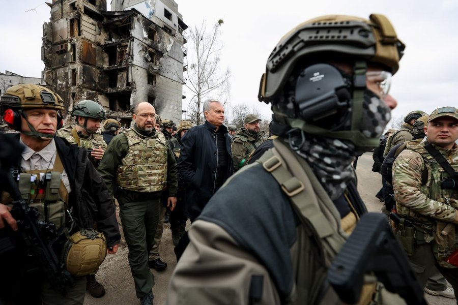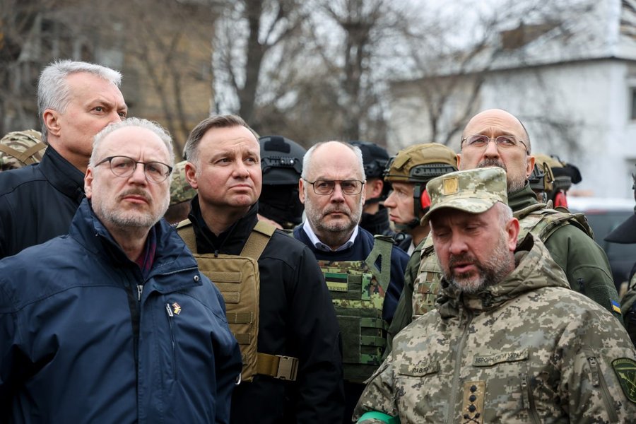 Президенты четырех стран – Польши, Литвы, Латвии и Эстонии приехали в город Бородянка Киевской области, который разбомбили российские оккупанты. Об этом написал в Telegram сопровождавший их премьер-министр Украины Денис Шмыгаль.