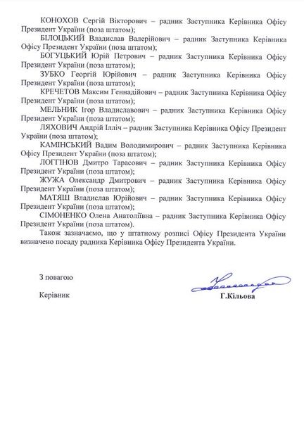 В предоставленном 18 августа Офисом президента списке штатных и внештатных советников президента и руководителей его офиса нет имени Алексея Арестовича, сообщает "Тиждень". Всего в этот список входит 46 человек.