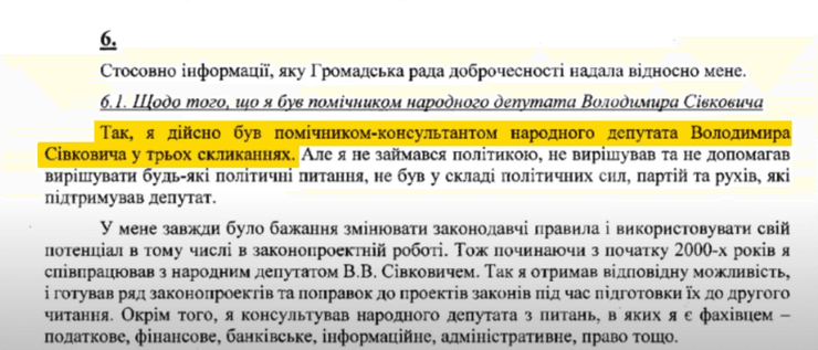 "Да, я действительно был помощником-консультантом нардепа Владимира Сивковича в трех созывах. Но я не занимался политикой, не решал и не помогал решать никакие политические вопросы. Не был в составе никаких политических сил, партий и движений, которые поддерживал депутат", — приводят авторы материалы ответ Гетманцева.