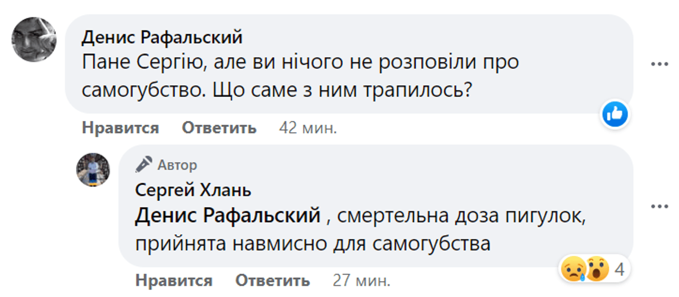 Депутат Херсонского областного совета от Евросолидарности Сергей Хлань написал у себя в Facebook, что Лагута якобы покончил жизнь самоубийством, приняв большую порцию таблеток. По мнению политика, экс-глава Херсонской ОГА решился на такой шаг из-за обвинений в сдачи Херсона. Хлань считает, что обвинения были беспочвенными.