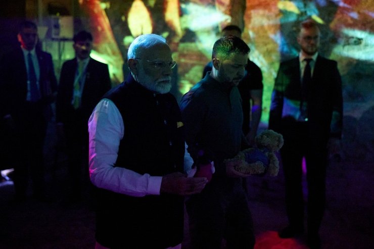 Владимир Зеленский и Нарендра Моди вместе почтили память детей, погибших в результате российской агрессии, на территории Национального музея истории Украины во Второй мировой войне.