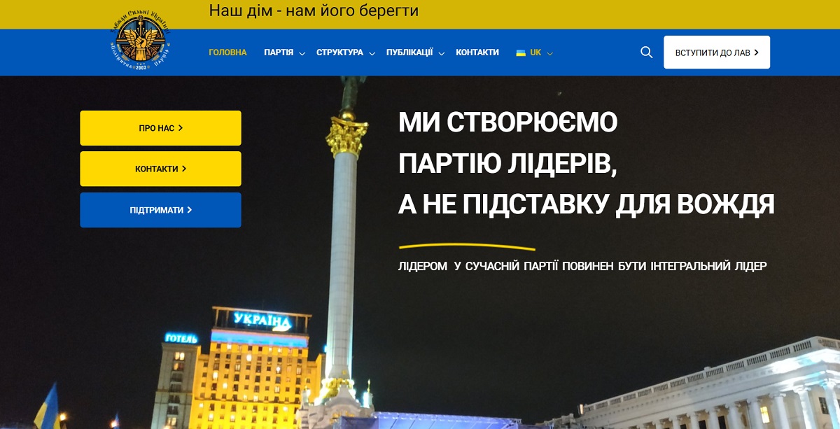 Адрес офиса партии по адресу Майдан Независимости, 2, это Дом Профсоюзов Украины. В ряды партии вступить пока нельзя, потому что страница в разработке.