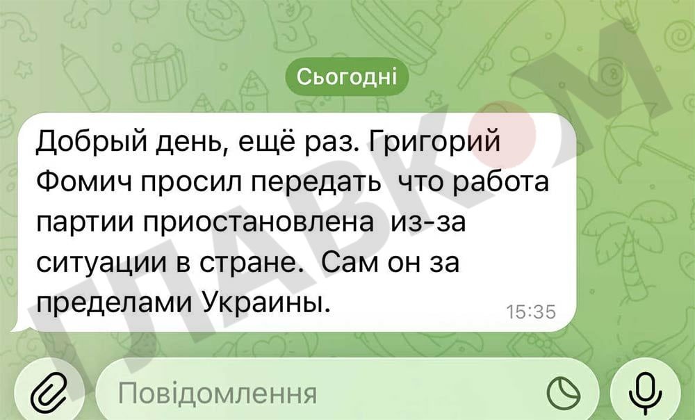 Журналисты попытались взять комментарий у экс-руководителя партии Григория Демченко. На запрос ответило его доверенное лицо в мессенджере: "Деятельность партии (чернобыльцев — ред.) приостановлена из-за ситуации в стране". Сам Демченко сейчас находится за пределами Украины.
