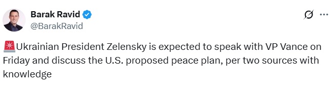 Тем временем Зеленский планирует на следующей неделе провести телефонные переговоры с Дональдом Трампом, чтобы обсудить параметры предложенного мирного плана, а сегодня он переговорил с некоторыми из европейских лидеров.