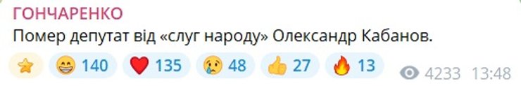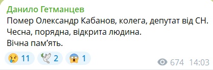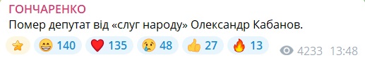 Смерть Кабанова подтвердил и народный депутат от "Европейской Солидарности" Алексей Гончаренко. Как и Беленюк, в подробности он не вдавался.
