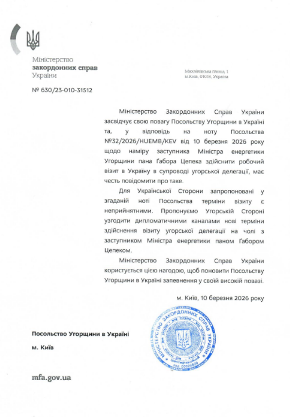 В то же время журналисты издания "Бабель" получили копию ноты, которую украинский МИД направил в ответ на ноту венгров. В документе говорится, что Украине не подходят предложенные венграми сроки визита, а МИД Украины предлагает согласовать новые сроки.