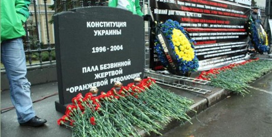 В ходе акции активисты движения установили перед украинским посольством могильную плиту с надписью "Конституция 1996 - 2004. Пала жертвой "оранжевой революции", а духовой оркестр исполнил похоронный марш.