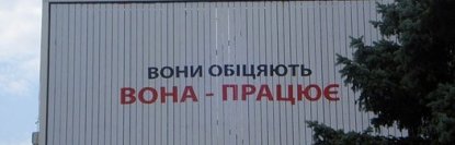 "Вона" была наклеена на билборды Ющенко ночью, сообщает ZAXID.NET.