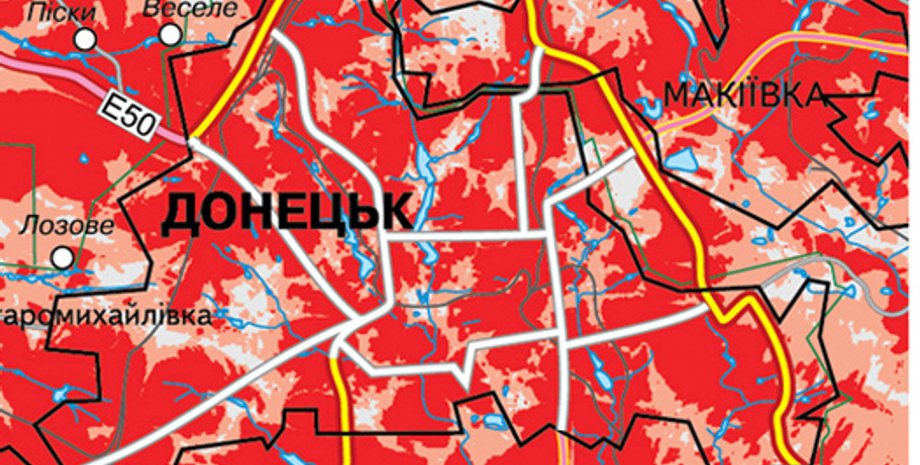 Движение в сторону Донецка перекрыто. Сотрудники ГАИ направляют транспорт по объездной через село Червоное, однако на дороге образовалась огромная пробка, в ней застряло, как минимум, 50 машин.