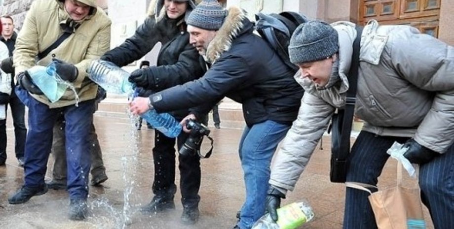 По данным организаторов, всего было вылито не менее 200 литров воды. Во время акции из-за гололеда не пострадал ни один человек.