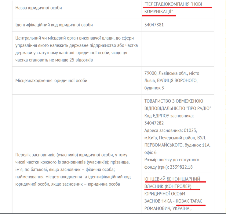 Информацию о смене собственника телеканала также подтверждают данные в Едином госреестре юрлиц.