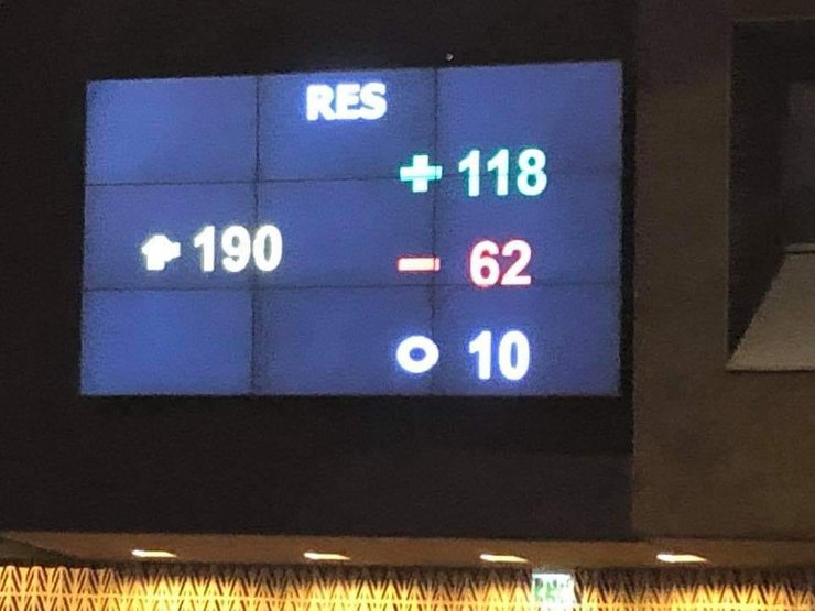 За соответствующее решение проголосовали 118 депутатов, против — 62, воздержались — 10.