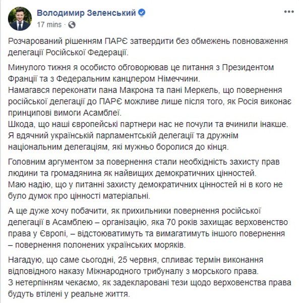 Отреагировал и президент Украины. Владимир Зеленский напомнил о пленных украинских моряках и сообщил, что он разочарован решением Ассамблеи Совета Европы.