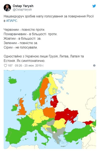 Впрочем, шансы на то, что РФ вернется в ПАСЕ были достаточно высоки вне зависимости от того, кто возглавляет украинское государство. По словам министра иностранных дел Павла Климкина, таким образом в Ассамблее "многие из европейских стран таким образом хотят купить прогнозируемость в отношениях с Россией. Они понимают, что Россия является такой, как она есть, они хотят иметь рычаг влияния на Россию и держать ее в Совете Европы". Сам Климкин такую политику евродепутатов считает плохой и ошибочной стратегией.