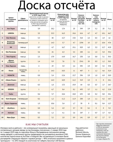 Фокус представляет рейтинг 20 самых успешных и влиятельных звезд украинского шоу-бизнеса.