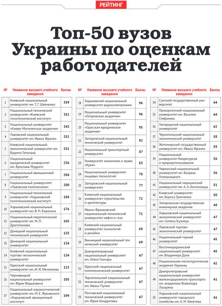 Подчеркнем: данный рейтинг не является полноценным исследованием качества образования в учебных заведениях Украины. Он отражает мнение ряда работодателей о том или ином вузе.