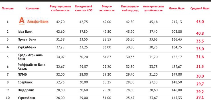 "Альфа-Банк Украина" закрепил за собой статус бессменного лидера качества управления репутацией и даже улучшил прошлогодние показатели как по финальному баллу, так и по исследуемым категориям — два года подряд банк набирает наивысшие баллы. Но коммуникация без сервиса — деньги на ветер. "Альфа-Банк" продолжает активно развивать качество дистанционных и онлайновых сервисов, мобильный банкинг, системы информирования и консультирования клиентов, обновил платформу интернет-банкинга "Мой Бизнес Online" для малого и среднего бизнеса. А сервис приватного банкинга "А-Клуб" от "Альфа-Банка" признан одним из лучших в стране.