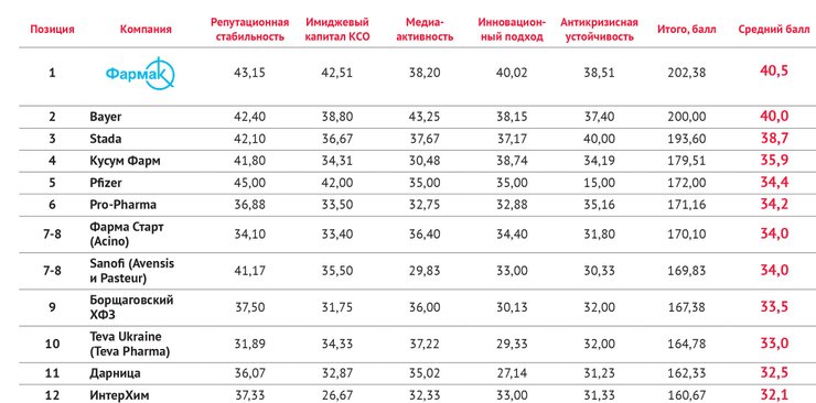 Рейтинг фармацевтических компаний