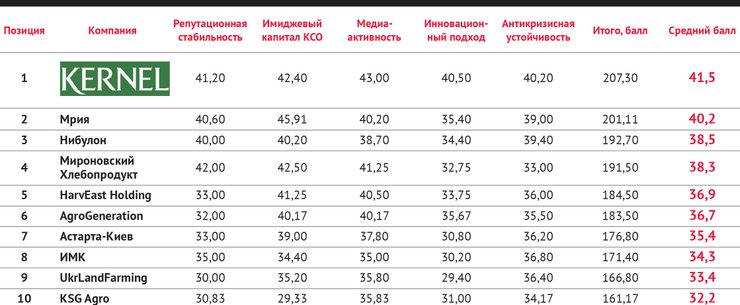 Свой вклад в развитие отрасли вносят также лидеры рынка, которые ответственно относятся к своему лидерству, влияют на формирование деловой культуры, отвечают за взятые обязательства. Поэтому неслучайно первое место среди аграрных имиджмейкеров заняла компания "Кернел" — самый крупный производитель подсолнечного масла в мире, удерживающий 7–8% мирового рынка. 90% произведенного масла компания экспортирует в Индию, Китай и другие страны Азии. Устойчивая деловая репутация аграрного холдинга строится, в том числе, на принципах прозрачности. Эта публичная компания, акции которой с 2007 года торгуются на Варшавской фондовой бирже, вовремя проводит независимый аудит и публикует финансовую отчетность, информацию об операционной деятельности, открыто аргументирует свою позицию относительно выбора поставщиков и т. д. Компания внедряет лучшие практики в агропроизводство, строит энергоэффективные предприятия. Сегодня у "Кернел" 8 маслоэкстракционных заводов, способных перерабатывать 3,5 млн тонн подсолнечника в год. Но компания продолжает наращивать мощности и строит самый большой в стране завод по переработке масличных культур (подсолнечника, рапса, сои) в Хмельницкой области. Мощность предприятия, которое планируется запустить в эксплуатацию в середине 2020 года, составляет 1 млн тонн подсолнечника в год.