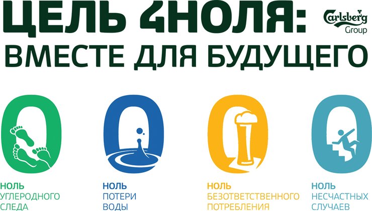 — Программа Carlsberg Group "Цель 4НОЛЯ: вместе для будущего" запущена в июне 2017 года и направлена на противостояние глобальным вызовам в сфере устойчивого развития, включая изменение климата, доступ к водным ресурсам, проблемы здравоохранения и т. д. Программа включает в себя четыре долгосрочные стратегические цели: НОЛЬ углеродного следа, НОЛЬ потери воды, НОЛЬ безответственного потребления и НОЛЬ несчастных случаев. Для каждой из них определены измеримые показатели до 2022-го и 2030 года.