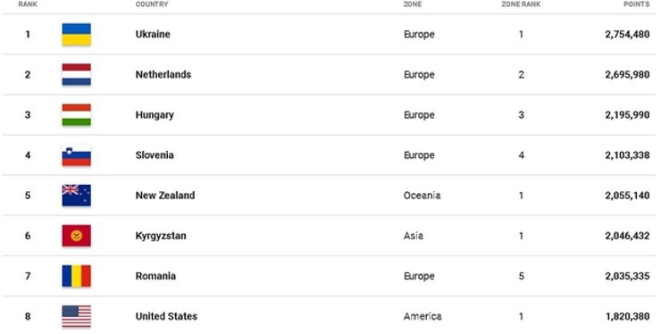 Мужская сборная Украины U-18 возглавляет мировой рейтинг, а девушки находятся на седьмой позиции.