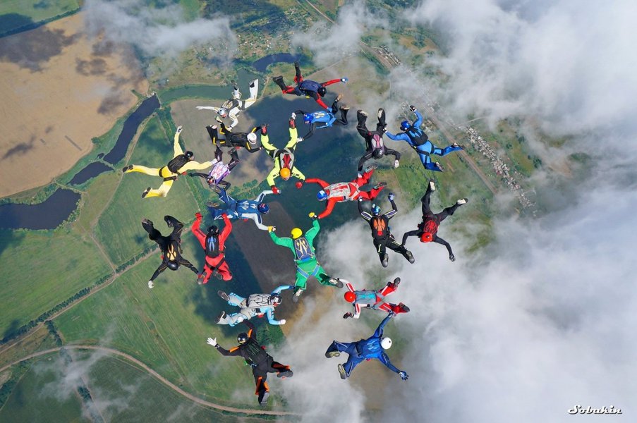 В свободном падении скайдайверы выполнили 5 перестроений и показали 6 больших формаций, пишет "Зеркало недели".