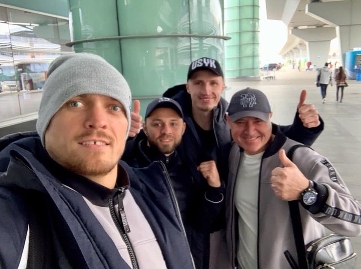 Усик выложил в соцсеть фото вместе со своей командой перед вылетом из аэропорта.