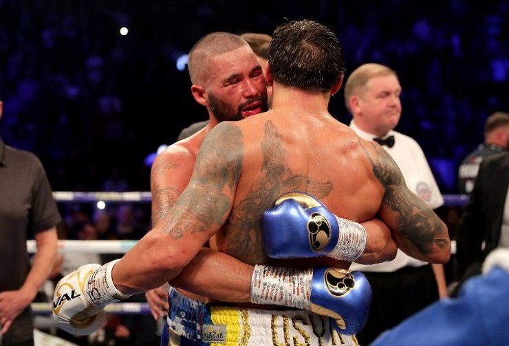 После окончания боя Александр, защитивший свои пояса, совершил еще один поступок, добавивший ему уважения со стороны местной публики и СМИ. Напомним, что в Англии много лет назад появилось знаменитое выражение: "Бокс – это разговор двух джентльменов при помощи жестов". И вот Усик после остановки боя повел себя как истинный джентльмен, принявшись утешать своего оппонента. Александр, дружески обняв зареванного бородача (это выглядело слегка комично), вывел его в центр ринга и поднял руку соперника вверх. Мол, хоть Беллью и проиграл, но все равно уходит из бокса победителем. Английская публика на трибунах оценила поступок украинца одобренным гулом и аплодисментами. А Беллью так расчувствовался, что обнимал Усика как родного.