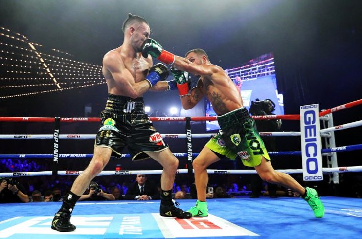 А Василий, как говорится, был в своем репертуаре. Особо на рожон не лез, особенно после того как пропустил несколько чувствительных встречных ударов. Но с каждым раундом Ломаченко увеличивал давление на соперника, стараясь при этом экономно расходовать силы. Похоже, что, как и в ряде предыдущих своих боев, задачей украинца было вымотать соперника, а когда тот потеряет силы, взвинтить темп и добить его.
