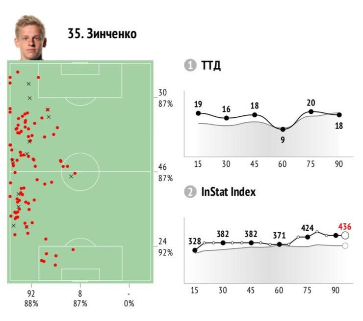 Отметим также, что по оценке эффективности игры, Зинченко вошел в тройку лучших исполнителей, набрав- 436 баллов. Полезнее сыграли лишь Рахим Стерлинг (545) и Серхио Агуэро (474).