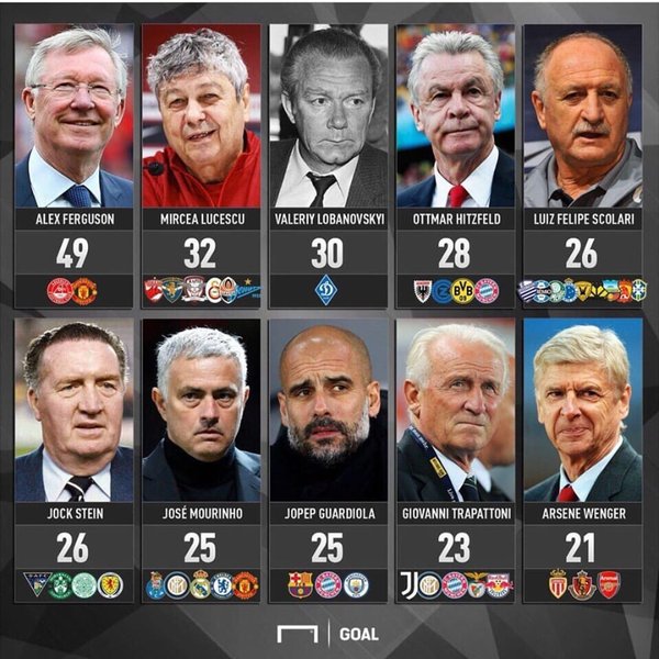 Возглавил рейтинг легендарный тренер "Манчестер Юнайтед" Алекс Фергюсон, в активе которого 49 титулов за карьеру.