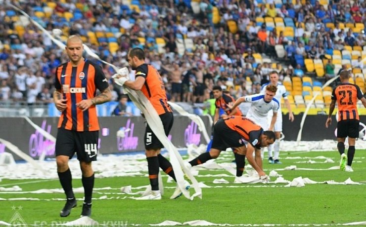 В прошлом году фанаты "Динамо" во время игры с "Шахтером" забросали поле туалетной бумагой