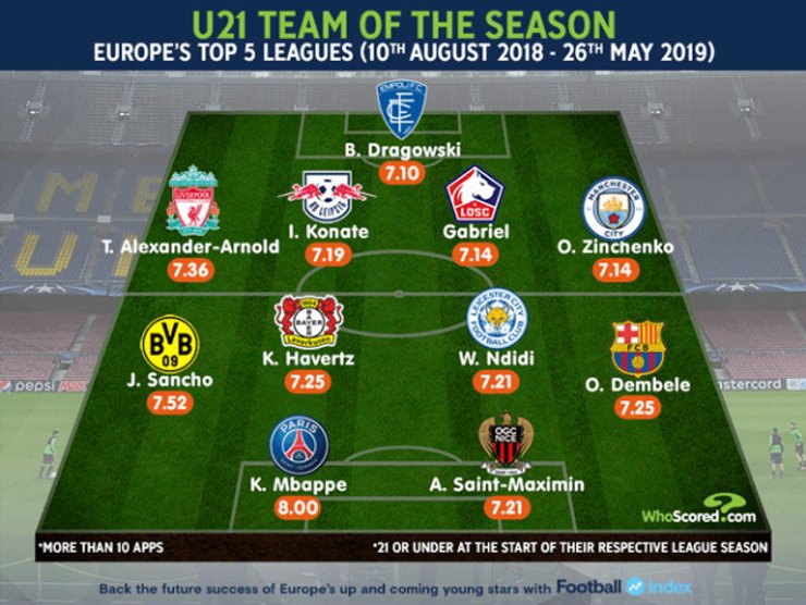 Чтобы претендовать на место в составе символической сборной, футболисты должны были провести более 10 игр и быть в возрасте 21 года или меньше во время начала выступления в лиге.