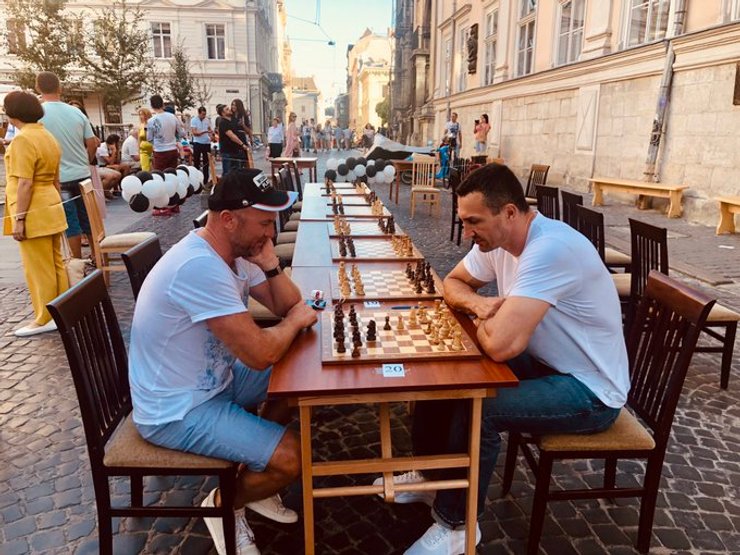 Легендарный украинский боксер, многократный чемпион мира в супертяжелом весе Владимир Кличко сыграл под открытым небом в шахматы с жителями Львова. Об этом он поделился на своем аккаунте в Twitter.